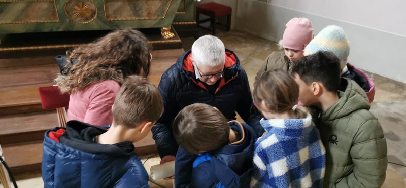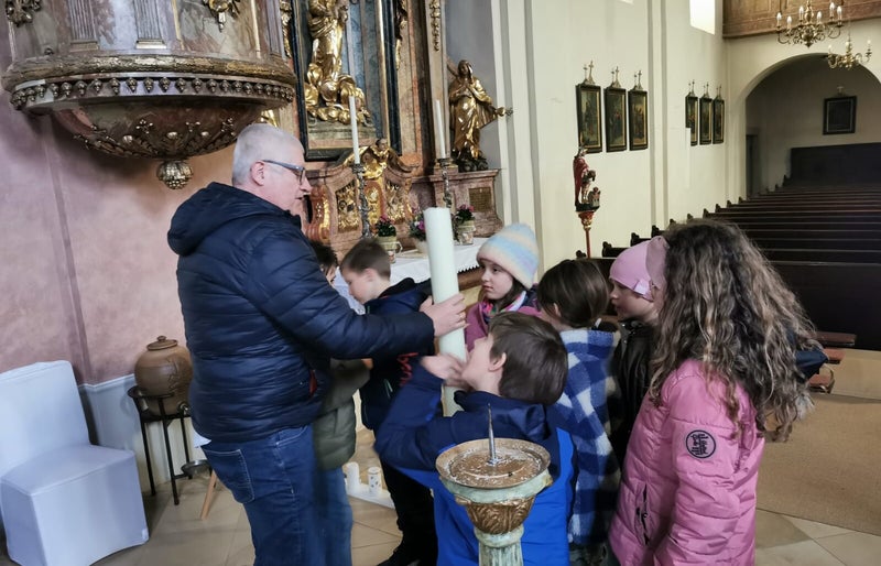 Bei der April-Stunde war wieder Diakon Friedl dabei und hat mit den Minis einige Sachen in der Kirche genauer unter die Lupe genommen.