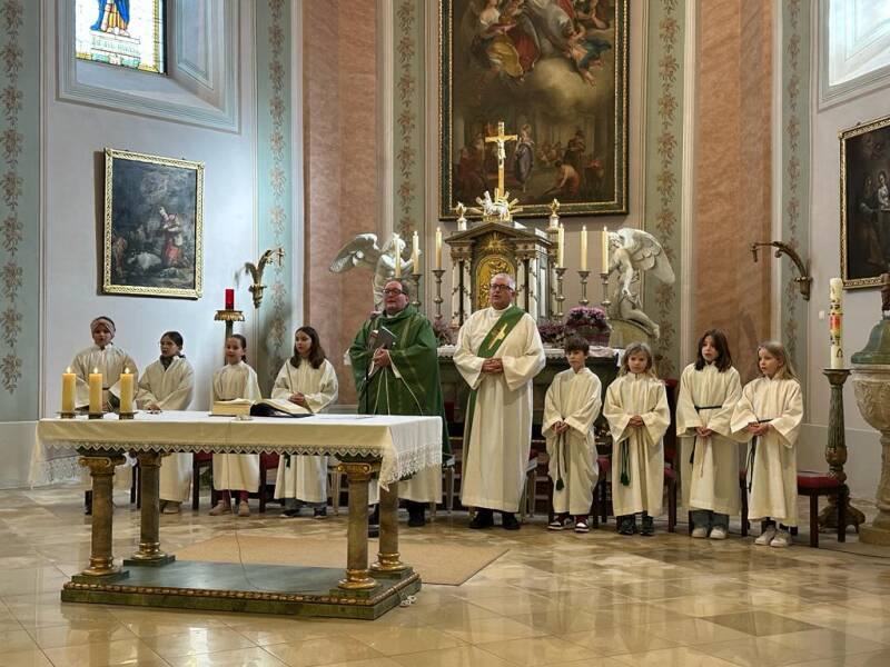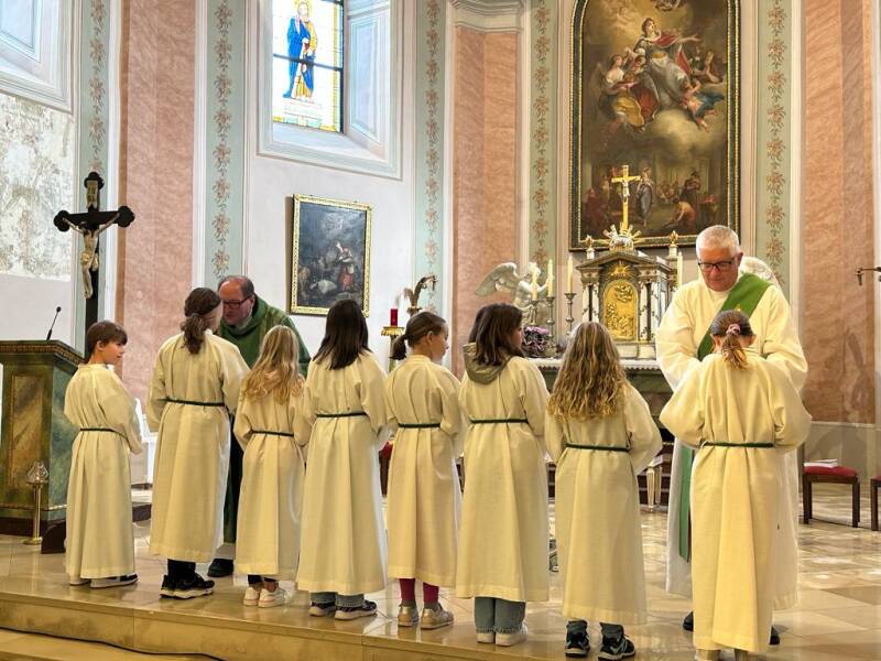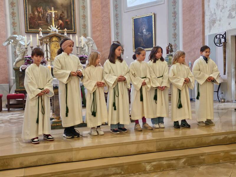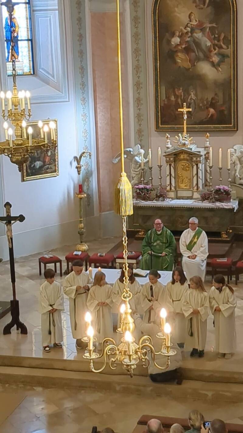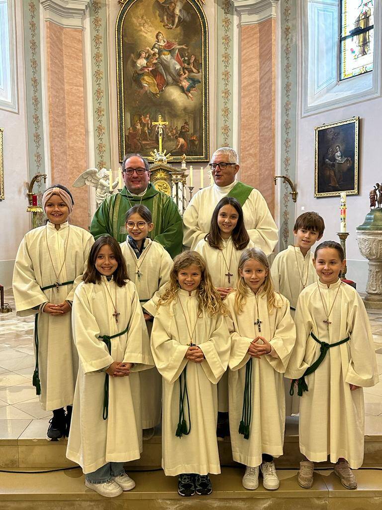 Heuer gab es zum ersten Mal eine MiniAufnahmemesse im Rahmen eines Familiengottesdienstes. Die persönlichen Perlenkreuze der Minis wurden gesegnet und die Minis gestalteten die Messe mit. Anschließend gab es ein kleines Pfarrcafé im Pfarrheim.